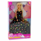 Roztomilá panenka DEFA LUCY zaujme dlouhými blond vlasy, černými šaty s barevnými puntíky a stylovými doplňky. V balení najdete růžovou kabelku, červené střevíčky a náramek. Ideální pro děti od 3 let, skvělá na hraní i jako dekorace do dětského pokoje.