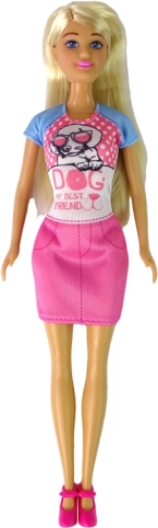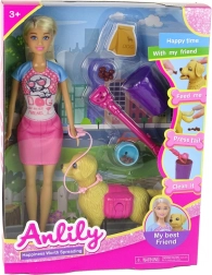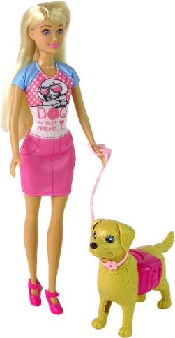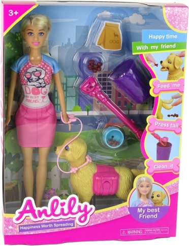 S touto sadou se děti ponoří do světa fantazie a péče o domácího mazlíčka. Interaktivní pejsek lze opakovaně krmit granulkami z misky a díky pohyblivému ocásku, uším a tlamě působí hra přirozeně a zábavně. Loutka s dlouhými blond vlasy má kloubové ruce i nohy, takže snadno zaujímá realistické pózy při krmení, venčení i mazlení.