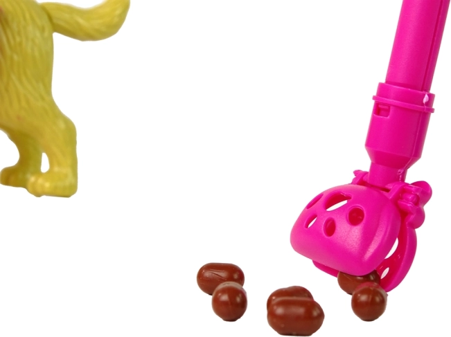 Součástí je růžové vodítko, koš a sběrná lopatka – děti si procvičí zodpovědnost, krmení i úklid po mazlíčkovi během zábavné hry.