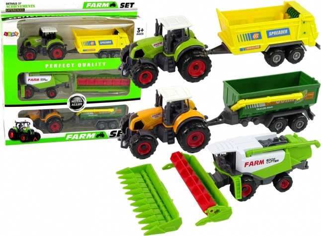 Sada nabízí vše pro malého farmáře: dva traktory s různými přívěsy a funkční kombajn. Každý díl je navržen tak, aby věrně napodoboval skutečné zemědělské stroje – od tvaru po barevné zpracování. Snadné manévrování a kompatibilní tažné prvky umožňují rychle měnit sestavy a vytvářet nové herní scénáře.