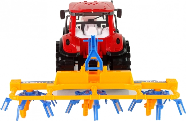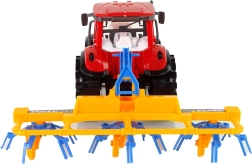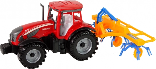 Tento detailně zpracovaný červený traktor se zadně připojeným zhrabovačem promění každou dětskou hru v farmářské dobrodružství. Díky frikčnímu pohonu se traktor snadno rozjede vpřed i vzad, zatímco pohyblivé části zhrabovače se při jízdě točí a napodobují skutečnou práci na poli.