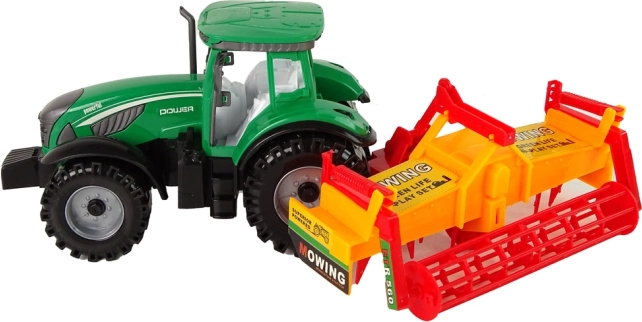 - Zelený traktor, oranžovo-červený kultivátor