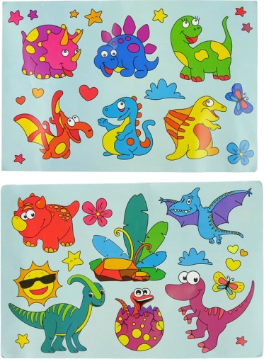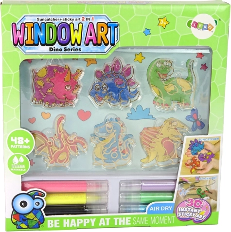 Balíček nabízí bohatý výběr šablon dinosaurů, díky kterým děti vytvoří originální 3D vitráže a ozdobí okna či zrcadla nápaditými motivy.