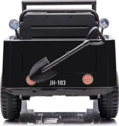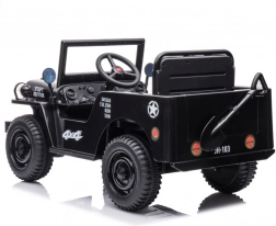 Objevte krásu jízdy v černém dětském autíčku 4x4, které nabízí věrné detaily jako volant, světlomety a boční zrcátka. Jeho odolná konstrukce a stylový vojenský design zajistí hodiny zábavy při imaginativních dobrodružstvích.