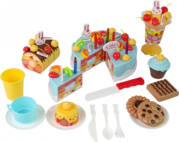 Každý dílek dortu lze díky suchému zipu opakovaně spojovat a rozpojovat, nechybí svíčky, toppery a ovoce pro nápadité zdobení. Kvalitní plastové provedení zajišťuje bezpečnou a odolnou hračku pro každodenní hraní.