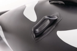Kosatka je vybavena dvěma pevnými madly na hřbetu, která umožňují stabilní a bezpečné držení ve vodě.
