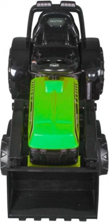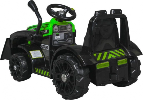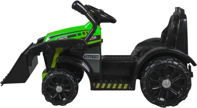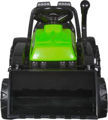 Elektrický dětský traktor v zelené barvě zaujme funkční přední lžící, kterou mohou děti snadno zvedat a převážet drobný materiál. Odolná plastová konstrukce, výrazná kapota a velká kola zajišťují stabilitu a jednoduché ovládání i na nerovném povrchu.