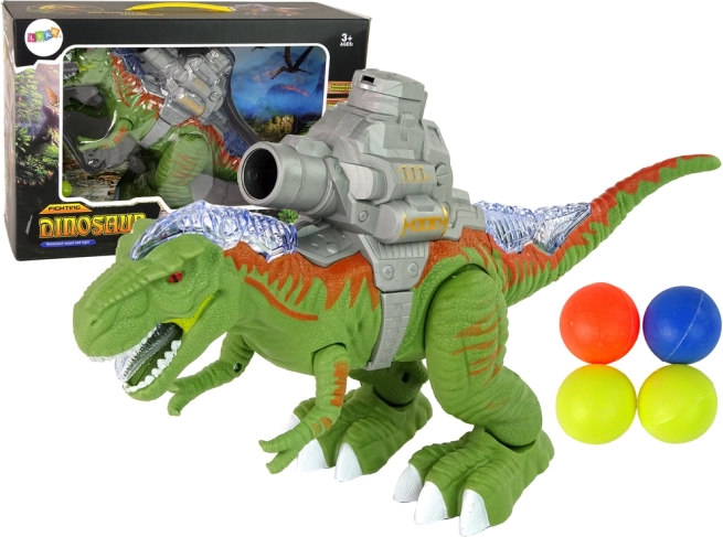 Objevte parádní akční hračku pro malé milovníky pravěku. Tento zelený dinosaurus je vyroben z odolného plastu, umí se pohybovat, svítí na hlavě a ocase a z tlamy se ozývají realistické zvuky. Na hřbetě má zásobník s katapultem, který automaticky vypouští kuličky zhruba po 10 sekundách – ideální pro dynamické herní scénáře.