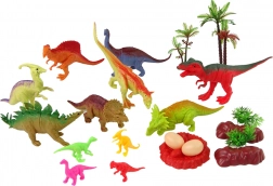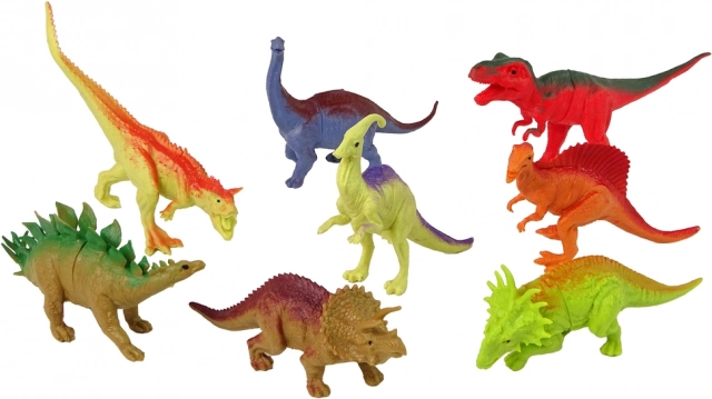 Sada obsahuje osm velkých a čtyři malé dinosauří figurky, každá z nich zobrazuje jiný druh a má svoji unikátní barvu.