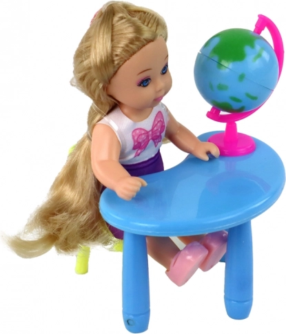 Navíc obsahuje stolek a židličku, na které si panenky mohou pohodlně sednout, a tak dokonale imitovat školní prostředí.