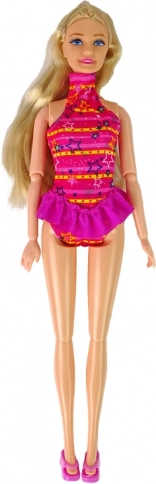 Loutka je vybavena dlouhými blond vlasy a krásným růžovým plavkovým outfitem, který podporuje každou hru.