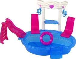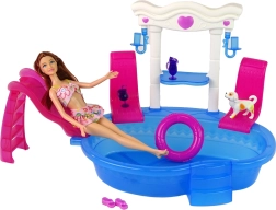 Součástí setu je také skluzavka, kterou děti milují! Doplňky jako fialové nápoje a růžové žabky umocní atmosféru letní zábavy. Navíc je zde plovací kruh, který dodává další možnosti při hraní.