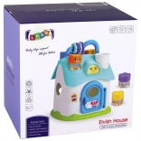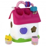 Domeček má čtyři různé otvory na střeše pro třídění podle tvaru a barvy a otevíratelné barevné dveře. Na střeše se nachází okno s usměvavou tváří, které svítí a vydává zvuky, čímž podporuje interakci a zaujetí dítěte.