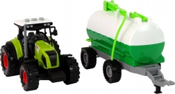 Objevte svět venkova s dětským traktorem s cisternovým přívěsem. Realistické provedení, výrazná zelená barva a velká kola podněcují fantazii i kreativní hru. Traktor má pohyb vpřed i vzad (na natažení) a na střeše tři tlačítka pro zvuky couvání, klaksonu a rozjezdu. Přívěs–cisterna se snadno připojí a díky otevíracím zeleným prvkům rozšíří možnosti hry.