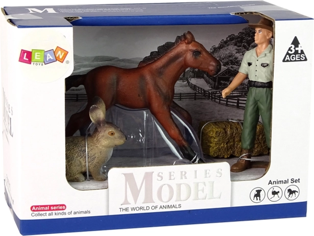 Precizně zpracovaná sada figurek z farmy s koněm, zajícem a farmářem potěší každého malého milovníka zvířat. Realistické detaily, odolný plast a velikost do dětské ruky podporují fantazii a jemnou motoriku. Věk 3+, certifikace CE a EN 71.