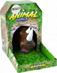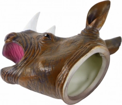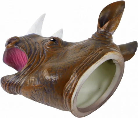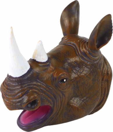 Tato maňásková loutka nosorožce působí mimořádně realisticky: má výrazné černé oči, precizně tvarované rohy a strukturovaný povrch připomínající kůži. Měkká guma je příjemná v ruce a umožňuje snadné ovládání čelisti i výrazů, takže se každé vyprávění promění v živé divadlo.