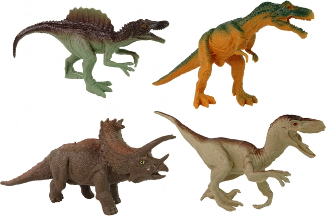 Objevte fascinující svět pravěku se sadou čtyř realistických dinosaurů. Figurky z měkké gumy jsou bezpečné pro děti, mají detailní zpracování a různé barvy i velikosti. Ideální pro hru i učení – děti si snadno zapamatují názvy druhů jako Triceratops, Velociraptor, Tyrannosaurus a Spinosaurus. Skvělý dárek pro malé milovníky dinosaurů s certifikací CE a shodou s EN71.
