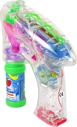 Zábavná pistole na bubliny promění každou chvíli v kouzelnou podívanou. Na jedno stisknutí vytvoří množství barevných bublinek a zároveň svítí. Součástí jsou 2 lahvičky roztoku, kompaktní rozměry 15 × 17 × 5,5 cm, napájení 3× AA a odolný plast. Certifikace CE, norma EN71, vhodné pro děti od 3 let.