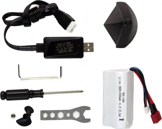 • Ready to Run: vše v balení – člun, akumulátor, nabíjecí kabel, nářadí, stojánek a náhradní vrtule.