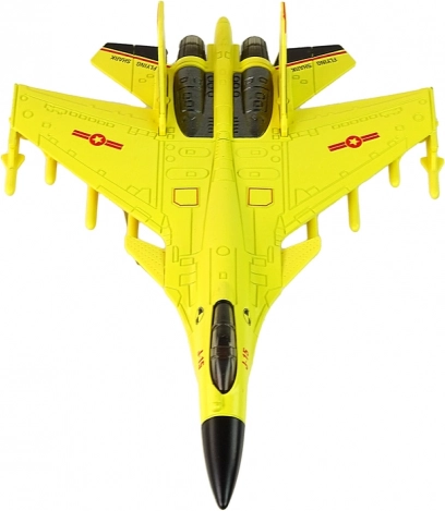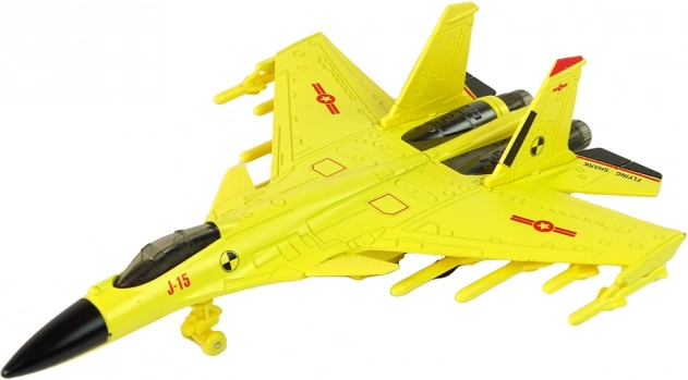 Elegantní žlutý design: Letadlo je vyrobeno v autentické žluté barvě, připomínající skutečný stíhač. Obsahuje gumová kolečka pro plynulý pohyb po různých površích.