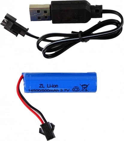 Součástí je akumulátor 14500/500mAh 3.7V, který umožňuje dlouhou dobu hraní a snadné nabíjení.