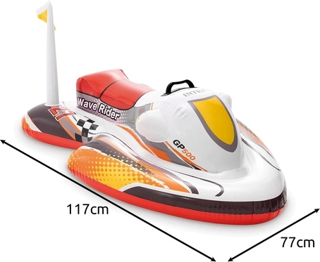 Kompaktní tělo umožňuje rychlé nafouknutí i vyfouknutí a snadné přenášení. Design s motivem Wave Rider GP500 a malou vlajkou zaujme každého malého jezdce a podpoří představivou hru v bazénu i na klidné hladině.