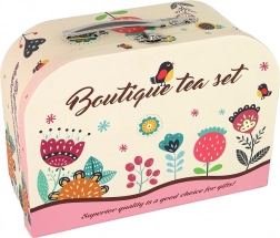 - 4 šálky, 4 velké talířky, 4 malé talířky, čajník, tác, kufřík