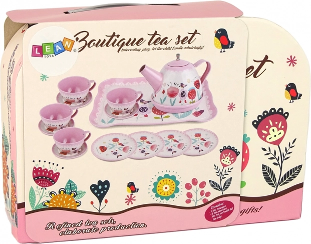 Roztomilá dětská čajová a kávová sada v přenosném kufříku potěší malé baristy i hostitelky. Obsahuje až 15 dílů s růžovými vzory – šálky, talířky, čajník s podnosem a kufřík pro snadné přenášení. Podporuje hru na role a fantazii, je ideální pro děti od 3 let a splňuje normy CE / EN 71.