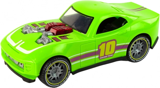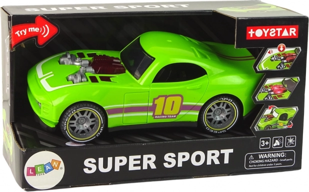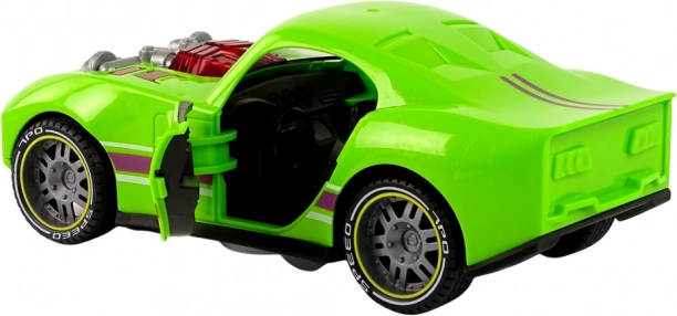 Udělejte radost malým milovníkům rychlosti tímto zeleným sportovním autem v měřítku 1:14. Realistické světelné a zvukové efekty aktivované stiskem a otevírací dveře na obou stranách přidávají hře na autentičnosti. Pohon na setrvačník (frikční) zajistí svižnou jízdu bez potřeby dálkového ovládání.