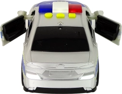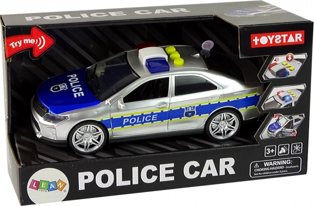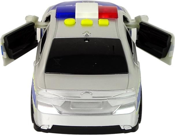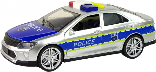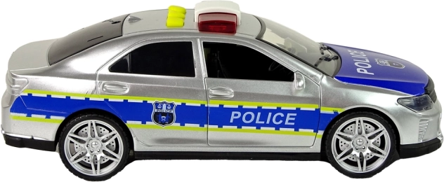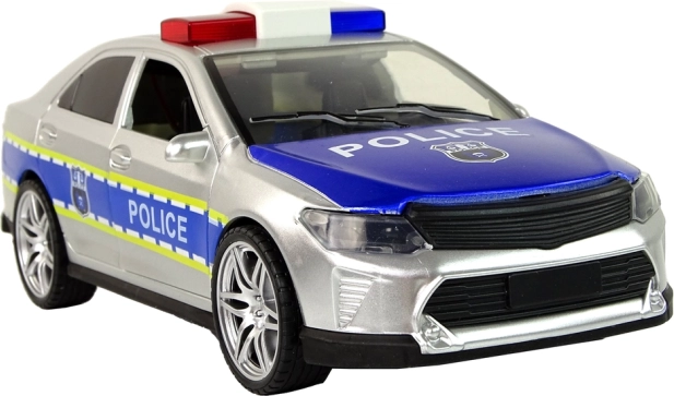 Stříbrné policejní auto realisticky napodobuje skutečný vůz. Otevírací dveře, zatmavená okna a přesné potisky dodávají hře autentičnost. Díky setrvačníkovému pohonu stačí autíčko postrčit a vyrazí vpřed, zatímco gumová kola zajišťují stabilní jízdu na rovném i mírně nerovném povrchu.