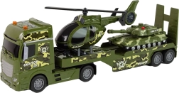 Tank se díky setrvačnímu pohonu rozjede vpřed i vzad a zvládá i otočky kolem vlastní osy. Nákladní vůz má velká kola pro hladký pohyb, na střeše tlačítka aktivující světla a zvuky a přívěs, který lze snadno připnout i odepnout. Vrtulník zaujme kouřovými skly a rotujícími listy rotoru.