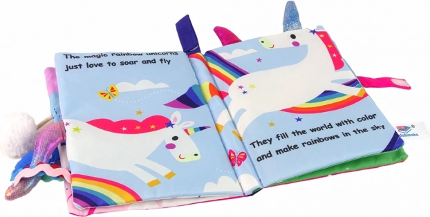 Obsahuje 8 stránek zdobených živými a poutavými barvami, které ožívají díky prvkům odpovídajícím různým částem těla jednorožců. Pro snadné skladování a přepravu je knížka opatřena zapínáním na suchý zip, které udržuje stránky na svém místě.