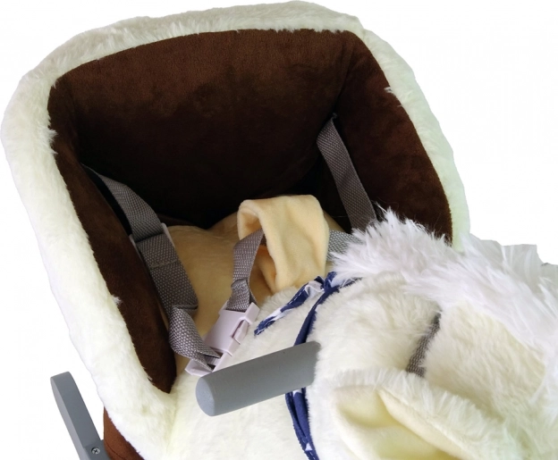 Houpací jednorožec je nadčasová dětská hračka a zároveň stylová dekorace do dětského pokoje. Jemný bílý plyš je příjemný na dotek, zatímco pevné šedé dřevěné lyžiny zajišťují stabilitu při houpání. Sedátko s bezpečnostními pásy a madly drží dítě v bezpečné poloze a dodává jistotu i menším dětem.
