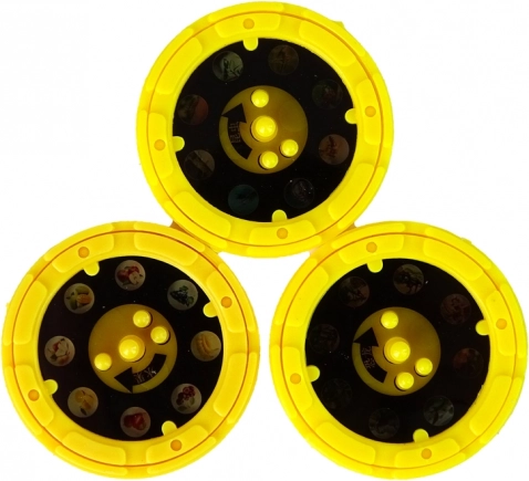 Tři výměnné kotoučky po 8 snímcích nabízí témata hmyz, dinosauři a ovoce. Jednoduché nasazení a plynulé přepínání motivů.