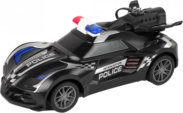 Černé dálkově ovládané rc policejní auto přináší akční zábavu se světelnými efekty a realistickým parním efektem z výfuku. V balení najdete dálkový ovladač, dobíjecí baterii, USB nabíjení i lahvičku na vodu – vše připravené k jízdě pro děti od 6 let.
