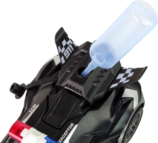 Stačí doplnit vodu pomocí přiložené lahvičky a auto při jízdě vytváří efektní vodní páru, která umocňuje dojem skutečné policejní akce.
