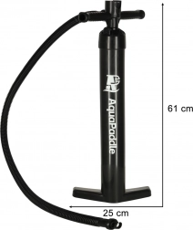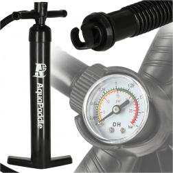 Univerzální ruční dvoučinná pumpa AQUA PADDLE s integrovaným manometrem rychle nafoukne SUP, čluny i bazény. Díky dvoučinnému chodu, přesnému manometru, ergonomické rukojeti ve tvaru T, dlouhé hadici 123 cm a stabilním opěrkám dosáhnete správného tlaku i pohodlného používání.