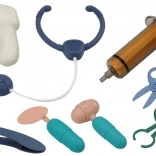 - vozík na kolečkách, stříkačka, nůžky, stetoskop, dekorativní samolepky, návod k použití