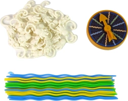 Objevte napínavou rodinnou hru s raketou, která promění každý den v kosmické dobrodružství. Postavte průhlednou raketu, vložte barevné tyčky do otvorů a shora nasypejte malé astronauty. Podle ruletky hráči postupně vytahují tyčky dané barvy – a kdo způsobí pád nejvíce astronautů, prohrává.