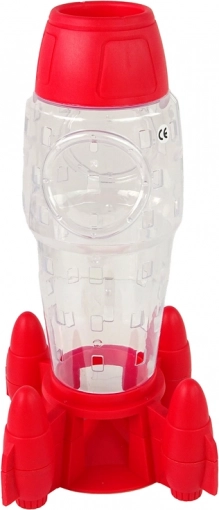 Průhledné tělo rakety umožní sledovat každý pohyb. Tyčky vkládáte do otvorů a astronauti se na nich zachytí za speciální háčky.