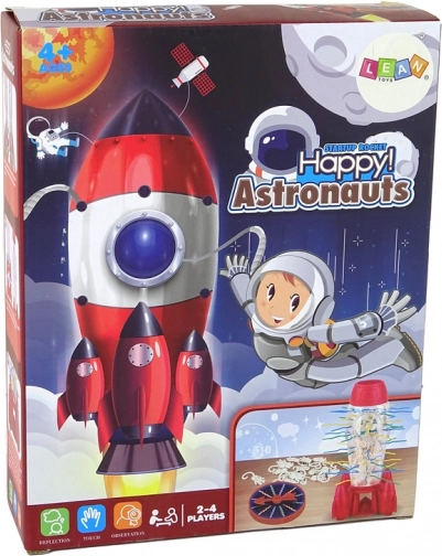 Vstupte do vesmírné zábavy se zručnostní hrou „padající astronauti“. Sestavte raketu, prostrčte barevné tyčky a nechte astronauty zavěsit se na jejich háčky. Pomocí losovacího kolečka vytahujte správné barvy a dbejte, aby astronauti nespadli. Hra rozvíjí jemnou motoriku, trpělivost a souhru ruky a oka a je ideální pro 2–4 hráče od 4 let.