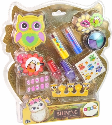 Kreativní sada na líčení a zdobení nehtů Sova nabízí vše potřebné pro vytvoření kouzelné atmosféry a stylových designů. Obsahuje laky na nehty, pilníček, ozdobné samolepky a mnoho dalších zajímavých prvků.