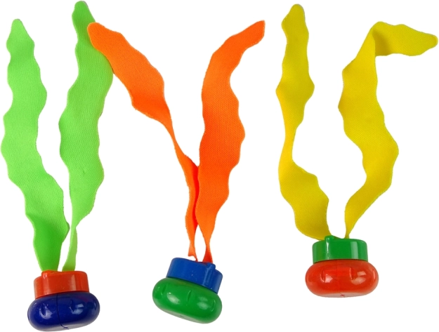 Tři barevné „květy” s textilními vlákny klesají na dno a jemně se vlní. Děti je snadno zahlédnou a s chutí je vyloví – skvělé pro zlepšení dechové kontroly, orientace a jistoty pod vodou.