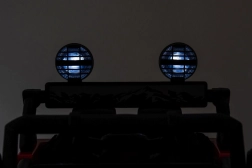 Interiér nabízí přehledný volant, palubní desku s tlačítky pro hudbu a funkce, bezpečnostní prvky a pohodlné sezení. Autíčko je ideální pro jízdu na zahradě, chodníku i lehčím terénu a podporuje kreativní hru i rozvoj motoriky.