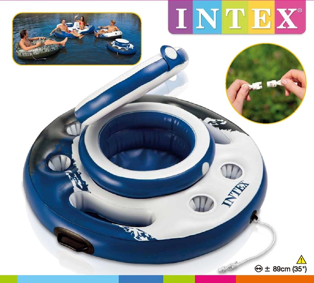 Nafukovací chladicí bar je ideální doplněk k bazénu, na zahradu i k vodě. Díky velkému průměru 89 cm pojme až 24 plechovek nápojů a s ledem udrží vše příjemně vychlazené. Praktická madla usnadní manipulaci na suchu i ve vodě, zatímco vícekomorová konstrukce zajišťuje stabilitu a bezpečnost.