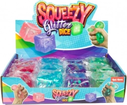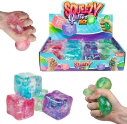 Antistresová mačkací třpytivá kostka 6 × 6 cm