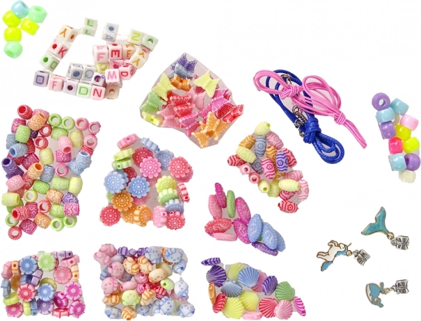 Dále v sadě naleznete barevné zirkony, které můžete použít k dekoraci kreativních projektů, a dva roztomilé prstýnky představující květinu a berušku, které nejen dodávají lesk, ale i eleganci. Navíc obsahuje různé barevné korálky různých tvarů, dvě růžové nitě, modrý provázek a tři různé přívěsky pro vytváření personalizovaných náramků a náhrdelníků.
