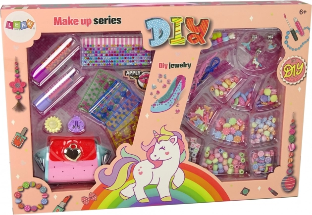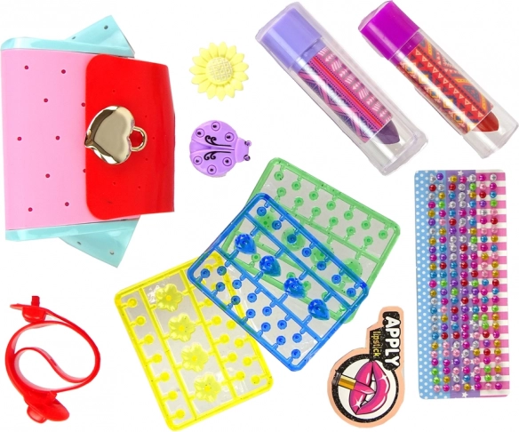 Hlavní hvězdou této sady je rozkošná taška, která se stává plátnem pro vaši kreativitu, kde připevňování plastových korálků je skvělá zábava. Obsahuje také dvě krásné rtěnky, které umožňují dětem cítit se jako opravdové módní ikony a experimentovat s různými barvami, čímž rozvíjejí fantazii a kreativitu.