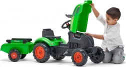 Šlapací traktor FALK X Tractor v zelené barvě s odnímatelným přívěsem je perfektní volba pro malé farmáře od 2 let. Nabízí robustní zpracování, klakson na volantu, řetězový pohon na zadní nápravě a otevírací kapotu s imitací motoru. Díky stabilní konstrukci a kvalitním plastovým kolům se snadno ovládá a je bezpečný pro každodenní hraní.