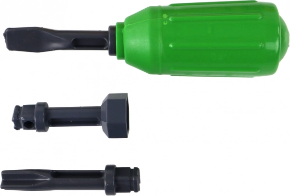 - Interaktivní montáž – šroubovák a vyměnitelné bity pro rozvoj jemné motoriky.